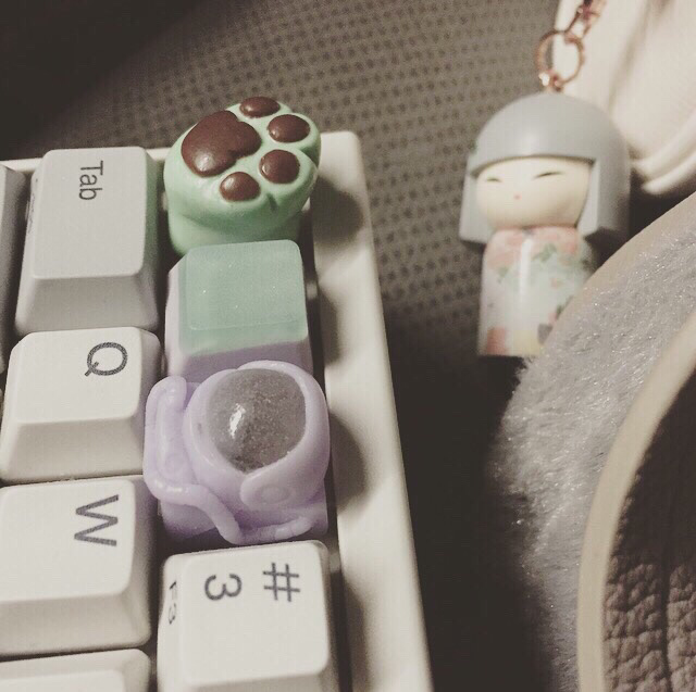 Another long-awaited goodie I recently received is an Octopink Clack set. Normally I prefer my artisans in Topre. After all, I use my HHKB BT more than any other board in my rotation. But I also happen to be using a Leopold 660M at work these days, the timing worked out perfectly. Especially since I tend to feel a little reluctant when it comes to bringing my artisans and keysets to work. I want to be able to enjoy them at home, where I do most of my serious writing, but I also just hate seeing a stock keyset while I'm at work. It's... depressing. After all, artisans and keysets both make me happy when I look at them, and I certainly welcome any little reminder to slow down enough to appreciate the small things in life, especially while I'm at work.