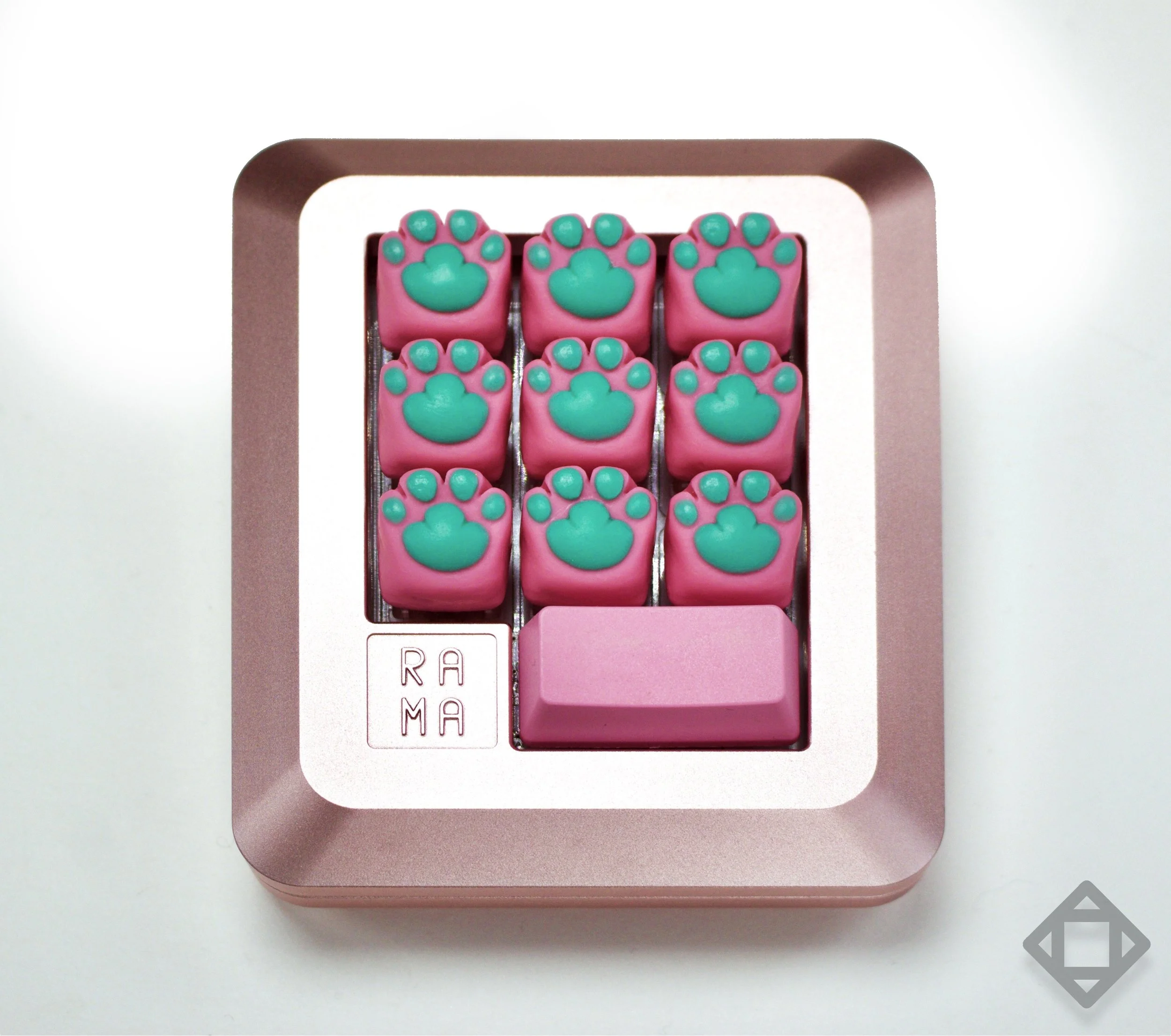 RAMA M10-A macro pad in person: this is something I have also been looking forward to since its inception. Suffice to say, it has been almost painful to wait for it to go to from GB to production, and at long last--ship. When the package finally came, I nearly tore it to pieces in my frenzy of excitement. Upon taking it out of the box, I was immediately elated by the hefty weight of it. I was also really looking forward to seeing the shade of rose gold in person, since I've amassed a rather large collection of meticulously matched EDC's. Although it turned out to be more of an Apple rose gold than a true rose gold, it is regardless breathtaking in person, and matches my existing Apple devices quite nicely.